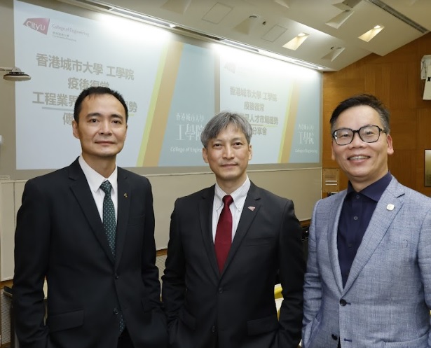 (左起)香港中華煤氣有限公司 (煤氣公司) 配氣操作部總經理黎錦圖、城大工學院石燦鴻教授、香港工程師學會卜國明會長探討工程業界人才市場趨勢。