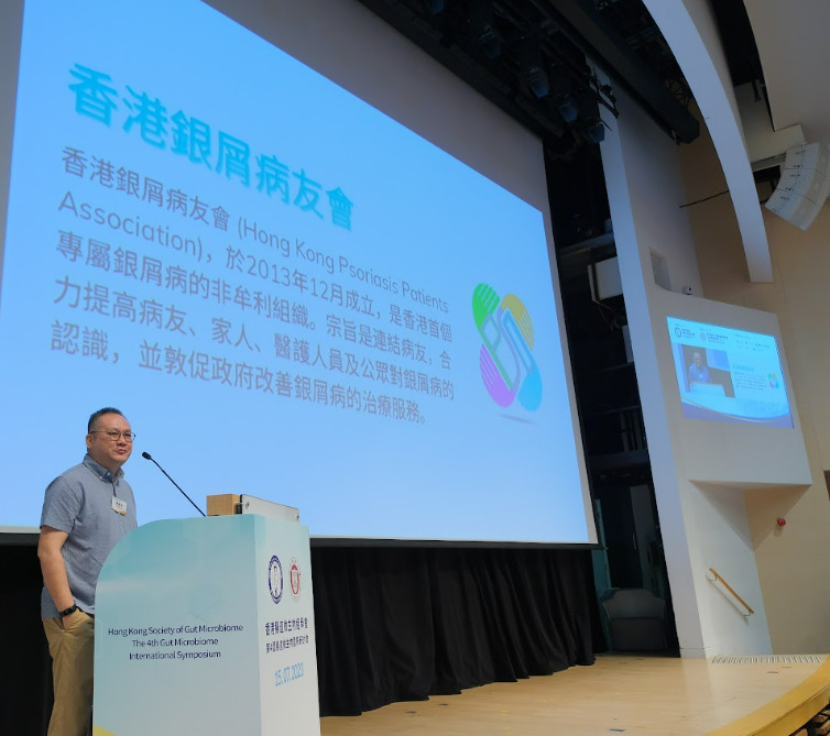 2021年,學會亦與香港銀屑病友會合作推展臨床實驗,患者連續兩個月服用配方益生菌,多數病人反映症狀嚴重程度的PASI及DLQI分數顯著下降。數據顯示,銀屑病患者腸道的厚壁菌門/擬桿菌門比率(Firmicutes / Bacteroidetes ratio)明顯較對照組為高。